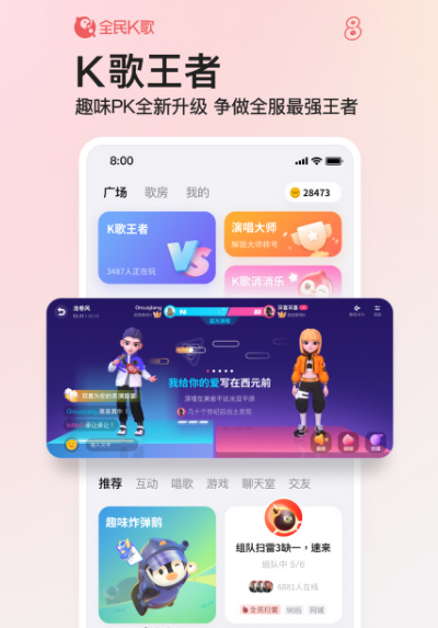 全民K歌的火热度一直居高不下,即便五音不全也能够成为K歌之王,这里有海量高清曲库,跟随着这些伴奏,大声嗨唱。其中拥有全民大合唱,多人共同大合唱,让自己在唱歌时完全不孤单。