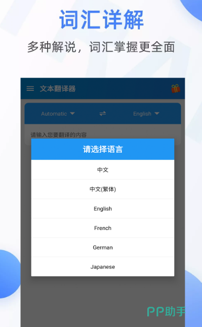 这是一款简洁又实用的软件,打开界面之后并没有太多的设定,可选择想要翻译的语言,然后将所想要翻译的文字输入其中即可,此外还有拍照翻译,利用此功能不需要输入文字,拍照片即可自动扫描,自动搜索,自动翻译。界面设计优雅又巧妙,支持的主流语言比较丰富,除了中文日语之外,还有维吾尔语满足大家多样化需求。