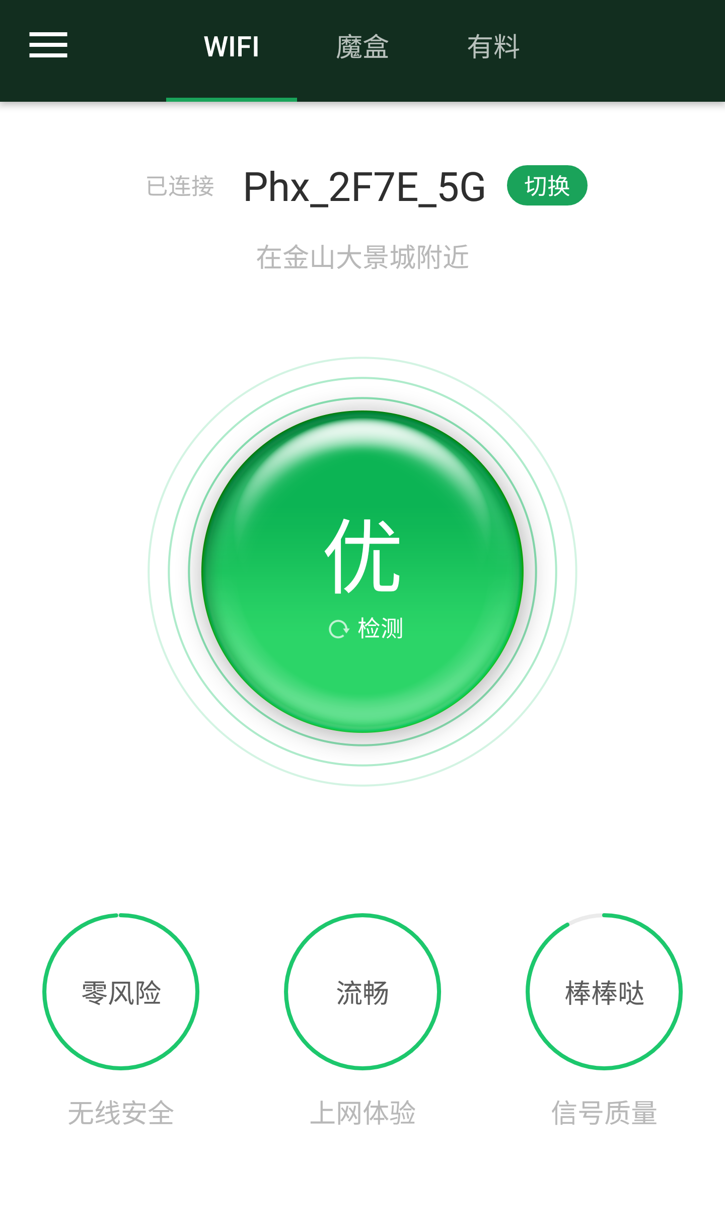 是一个WIFI检测的神器,打开这个神奇的魔盒就能够安全连接网络,信号质量和网速也能够一目了然的看到,无线的专业工具再也不需要自己去四处寻找WIFI了,无限的精彩和无限的学习让你的生活更加丰富多彩,看干扰、知强度、求稳定。
