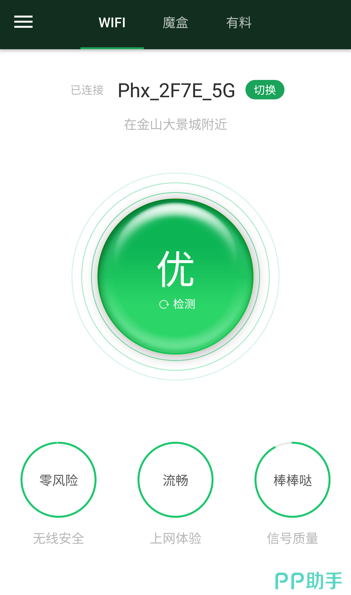 可以让大家随心所欲的去连接WIFI,这样就不会去花费你的流量而产生过多的话费费用了,帮助大家安全检测智能的WIFI安全,可以一键查询附近的WIFI点,自动安全连接,让你随时随地都有网可用,并且到达一个地方之后如果有WIFI的话也会智能提醒大家。