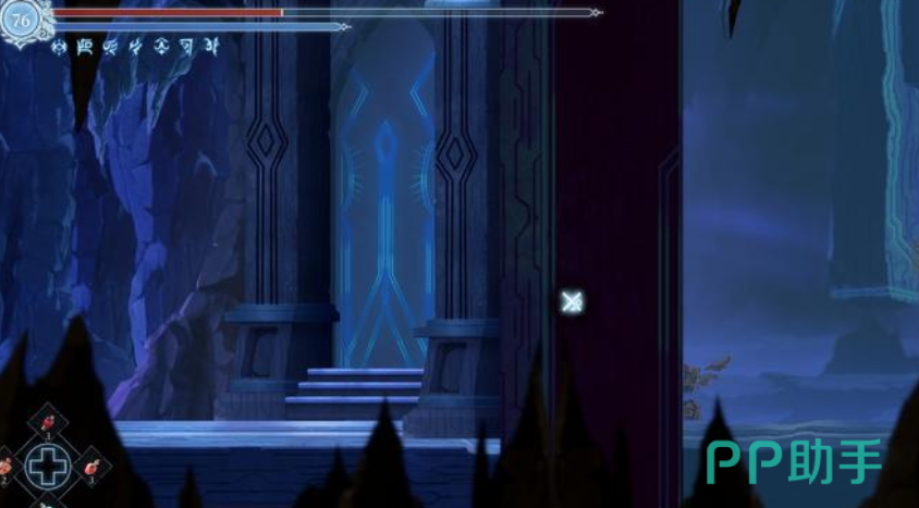 这个看似不存在的存档点实际上位于地图中间偏下的位置。当第一次循着地图到达这里时,可能只能看到周围的树枝,而无法看到存档树。但是只要往上跳到这个有宝箱的平台上,就会发现一个捷径机关。击碎这个机关后,上面的存档树就会自然地下落到地图标志的位置上,这样你就能够方便地进行存档了。