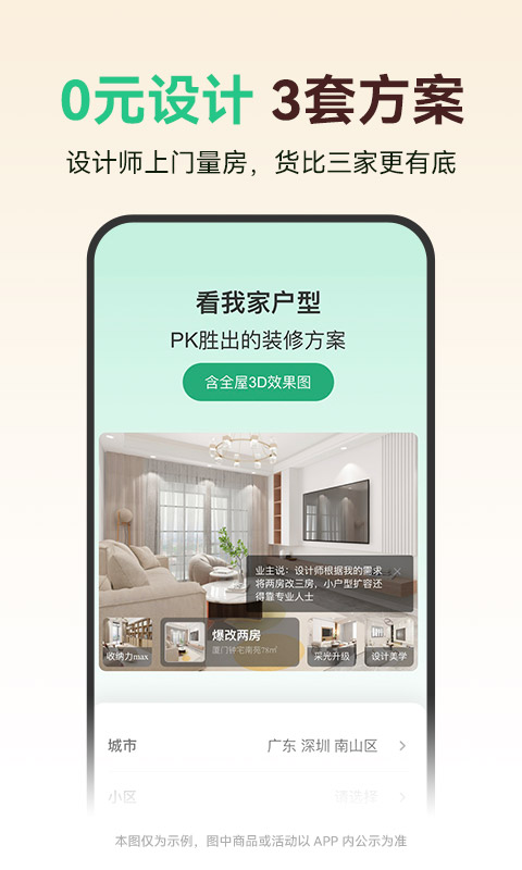 土巴兔装修这款软件可以为我们免费设计三款专业的装修方案,以及提供了各种实用的功能和信息。用户可以通过该应用查找装修材料的价格、了解装修流程、获取装修经验和技巧等。可以让我们在真正装修的过程中不至于有一种一脸懵的感觉。