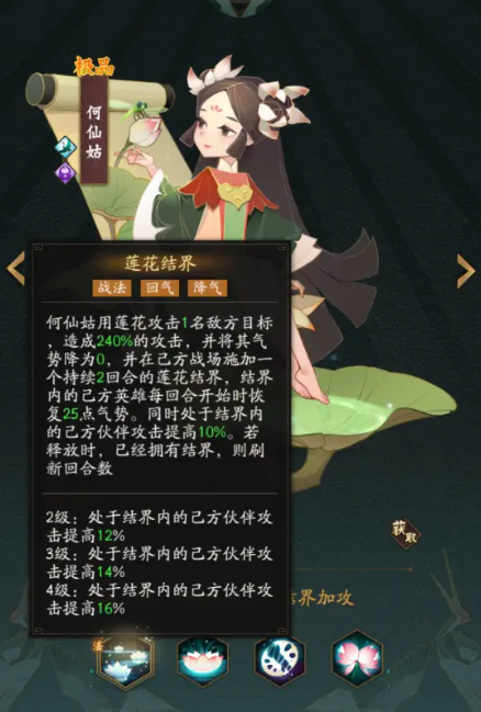 黑白无常属于一个控制敌方并且会削弱敌方的增益效果,这个在作战中非常有用,因为目前游戏中的辅助角色太过超模,小编是按照克制关系来排的榜,何仙姑和女娲这两个角色就是辅助角色啦,女娲大家非常熟知吧,这个觉得有一个非常独特的地方就是可以复活队伍中的队友,这是在游戏中前所未有的,非常实用,而何仙姑的技能主要用于给友方增加气势的回复,效果较为强劲。