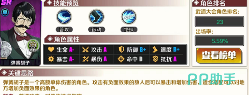 弹簧胡子的技能释放操作难度不高,基本上就是就是使用普通攻击和大招打伤害,不过就是要求队伍要有一定的配置,最好队伍中有一个可以提供负面状态的角色,这样能保证胡子高频率的伤害覆盖。