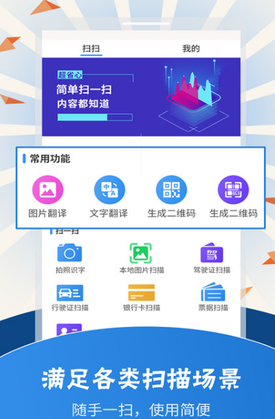 有的翻译软件比较落后,想要翻译一个短语或者一篇文章,需要将原文输入到其中,才可以正常的翻译,而扫描翻译完全不需要这么繁琐,功能强大,画面简洁,下载之后就会爱不释手。这是一款非常专业的图片,文字识别,软件扫描速度非常快,识别准确率较高,为大家提供人性化服务,多种语言可随时翻译,这种场景轻松扫描,除了可以扫描图片,还能扫描二维码。