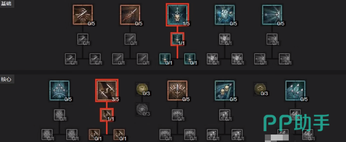 首先来看一下最基础,学习寻心者,这个技能可以发射火箭,严重对方可造成高额伤害,是非常好的探测技能,建议大家可以走远程输出流,尽量别点那些近战的技能。之后的核心技能就可以选择熊熊大火,可以连续发射好几发弓箭,而且在学习穿透射击就能够对别人造成巨大的伤害,再点击一下被动技能就可以恢复自身的能力了。