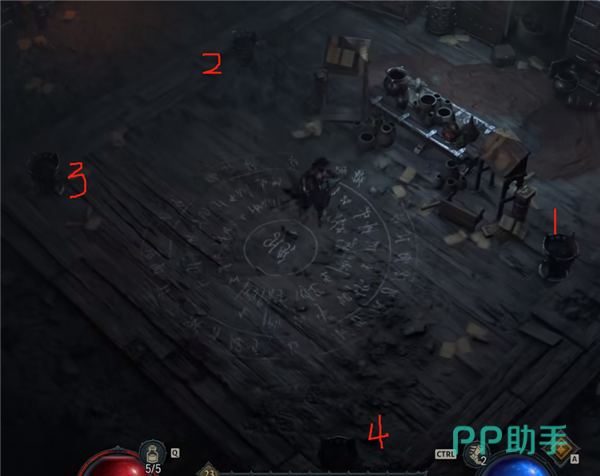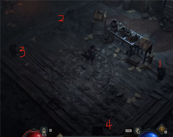 这个任务就是让你去一个小黑屋中点燃三个火盆,按上图的123顺序去点燃,然后你就会发现仪式错误,召唤出来一个恶魔,之后需要大家将这个恶魔给击杀,这样你就可以解锁第一个附魔槽了。