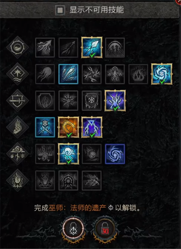附魔槽的位置其实还是很好找的,大家只需要按下S打开技能栏,之后往技下面翻,来到最底部的位置就能看到现在拥有的附魔槽,不过玩家一开始的时候并没有可用的技能槽,得需要完成一个15级的任务才能将其解锁为可用状态。