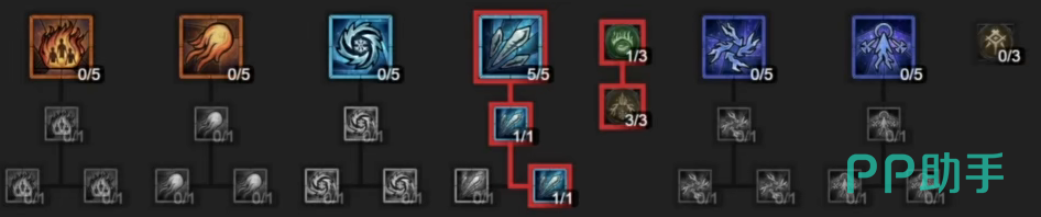 基础技能:“寒冰弹”和“火焰弹”各加一点,这两个技能可以提供冻伤和灼烧的负面状态,在实战中能够对敌人造成明显的减益效果,而且你配合后续的技能攻击这些被挂了减益的目标还能有额外伤害,如果是纯冰法的话建议可以把寒冰弹下面的分支也给点出来,这样伤害会更高。