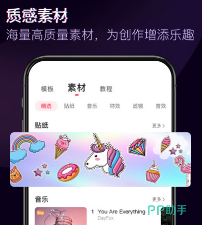 如果想对抖音的视频剪辑的话,就可下载该软件,它是非常适合安卓平台剪辑视频使用的软件。只要将要制作的视频上传到软件里,就可将视频的滤镜改变。其中的滤镜既有美颜、美白,更有黑白等类型的,也有很多视频主题可选择。在添加音乐的时候,可根据自己喜欢的选择,功能特别的齐全,制作完全免费。