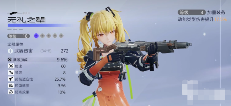 霰弹枪瞄准的售后靠近胸口或者是头部都可以让敌人被击中,尘白禁区里面因为画面设置的其实时一种俯视的视角,所以对于霰弹枪而言也是有一定优势的,游戏中的这把霰弹枪叫做无礼之辈,伤害快300,射速不高只有60,但是后期武装加成效果不错,还有换弹速度也是要近4秒时间的。