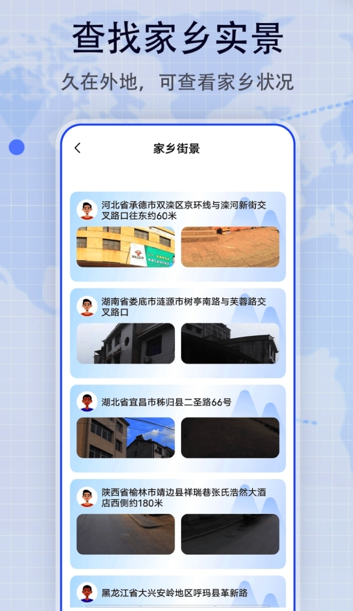 软件利用3D图像让用户自由查看各个城市地点,采用了3D模型带给用户真实体验,提供全球各地方的实景,家乡街道随意查,大家想看的乡村街景都可以用这款app查找。有快速定位,实景导航不迷路。