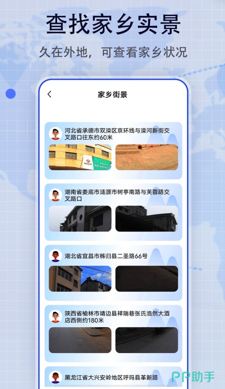 这款软件能查找家乡实景,让久在外地的你可以随时看家乡状况,有详细的位置显示。另外,还可以身临其境般地查看世界街景,无数房屋街道都以3D形式呈现在你眼前。软件还有音噪分贝仪,可以查询周围的噪音变化。