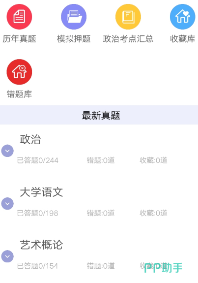 这款软件满足全国各个考生的需求,其中有各种各样的科目,为大家准备历年真题以及考点总汇等各种板块,小伙伴们可以利用这款软件,充分的学习所学习到的知识。由于app特别方便,因此小伙伴们可以随时随地练习,轻松帮助大家顺利通过考试。在该软件当中有很多非常实用的功能,除了有各种真题之外,还有随机练习错题库,练习时可以将错题加入错题库之后集中练习,反复练习。