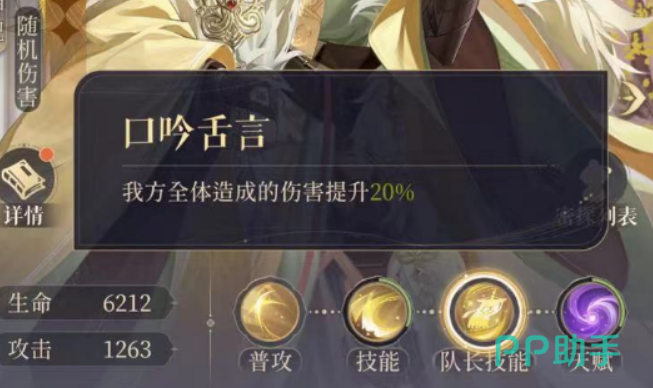 当然,大家不要完全被技能的赌脸吸引目光,而忽视了杨修非常实用的队长技能——口吟舌言。这个技能会让队伍中其他角色造成的伤害提升20%,没有什么花里胡哨需要阅读理解的描述,就是一个朴实无华的数值加强,但可以帮助各位玩家从整体上提升战力。何况万一杨修扔出来两个6呢对吧?