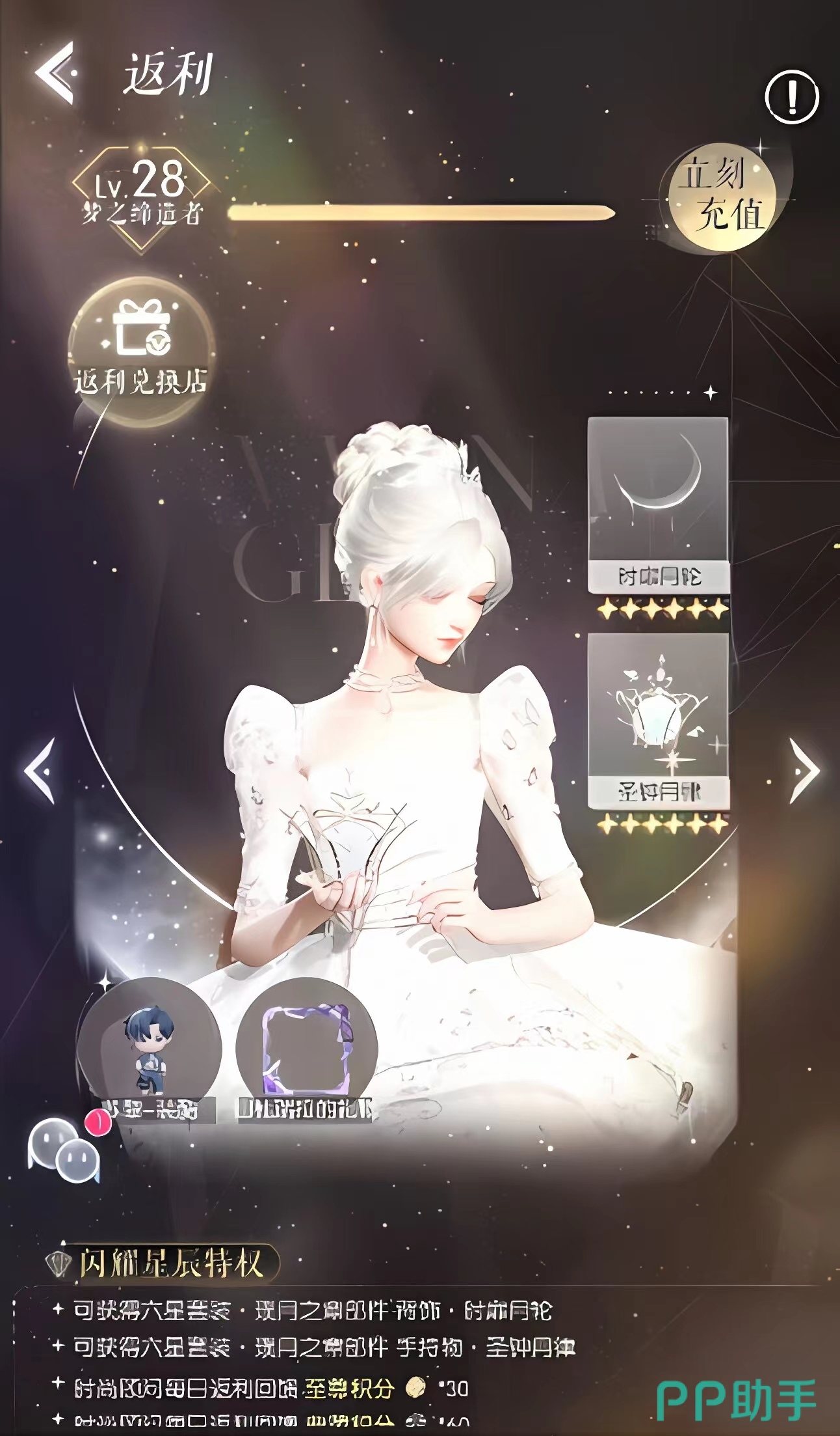 目前在游戏里面,如果玩家想要去获取这个套装的话,就必须得通过氪金返利的方法了,虽说对于平民玩家来说,这种获取方式确实是不太友好的,但这套装确实是很独特,也很有气质的,整个服装都是以珍珠白为色调的,看起来比较简约,而且她的裙子一共有长款和短款的两种款式,短款的裙摆是偏大一点的,要是穿上的话会给人一种公主气质。
