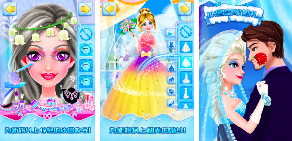 王子和公主即将举办一场盛大的婚礼,而在这个冰雪王国当中,举国上下也是十分欢庆的,但是在如此重要的场合,公主必须要有一身合理的礼服搭配,玩家进入游戏之后可以成为一名皇家设计师,为公主选择各式各样的礼服和妆容进行更加得体的搭配,而且每一套礼服的色系差异都是非常大的,在穿上的一瞬间都可以拥有不同的视觉体验,除此之外,玩家在游戏中还要做好婚礼蛋糕,让婚礼蛋糕的造型和样式更具有独特性。