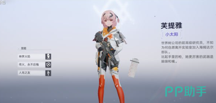 综合评价:芙提雅是目前最强辅助之一,不管是是平民玩家还是氪金玩家都很值得尝试,她可以对队友的枪械进行增益,尤其很擅长群体输出,比较适合和高攻速的队友合作,也因为长期从事研究工作,在体力方面略显不足。