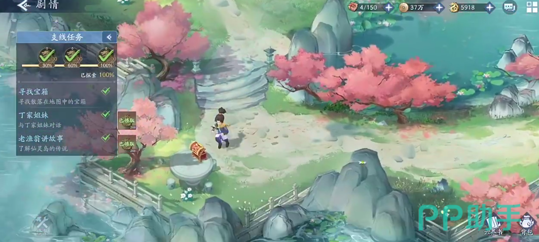 十里坡与NPC交谈过后可以领取一个宝箱,山神庙这里也有一个宝箱。完成仙灵岛的任务之后可以触发相应的支线任务解锁新的地点,在仙灵岛的左边有两个宝箱,玩家要做完任务才可以进行领取。