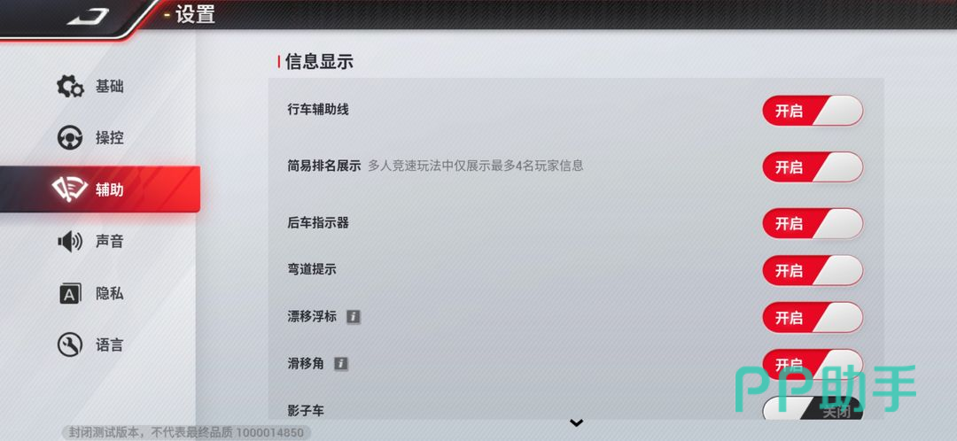这里起漂点的选择得要根据不同玩家的操作风格来判断,但最开始还是得要用到辅助线,作为新手玩家可以通过设置中的辅助选项开启相关的漂移提示,这样在赛场上他会提前告诉你们前方有弯道,到时候各位可以更快的做出反应。你们将辅助设置中的漂移浮标选项开启,此处系统还会在合适的漂移点那里标记出来,你们只需要将车辆行驶到那里之后进行漂移就可以了。