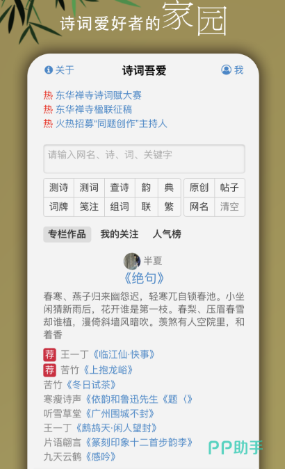 在孩子刚刚咿呀学习说话的时候,家长都会教孩子说一些诗词,我们都知道,中国诗词的魅力是非常大的。所以从上学就开始学习一些文人的诗词,那么今天来了解一下诗词格律检测软件有哪些?如果平时在生活中,你也很喜欢研究这些诗词,就可以下载到手机上,方便随时随地来了解。