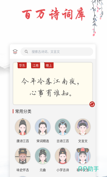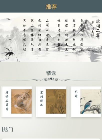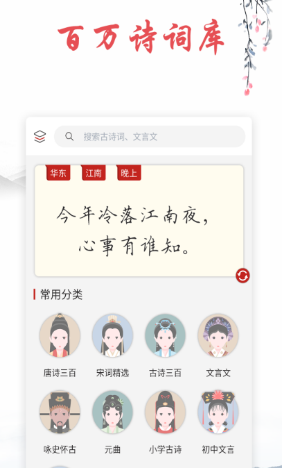 该软件上针对于唐诗宋词以及文言文歌赋等等推荐上万首,都是一些著名的诗人创作的,还有各种关于诗词的讲解,能够让用户可以更好地领略这些诗词的魅力,深受家长的喜爱,而且该软件为了满足大众人群的需求,也在不断的添加新的元素,让用户在使用的时候更得心应手。
