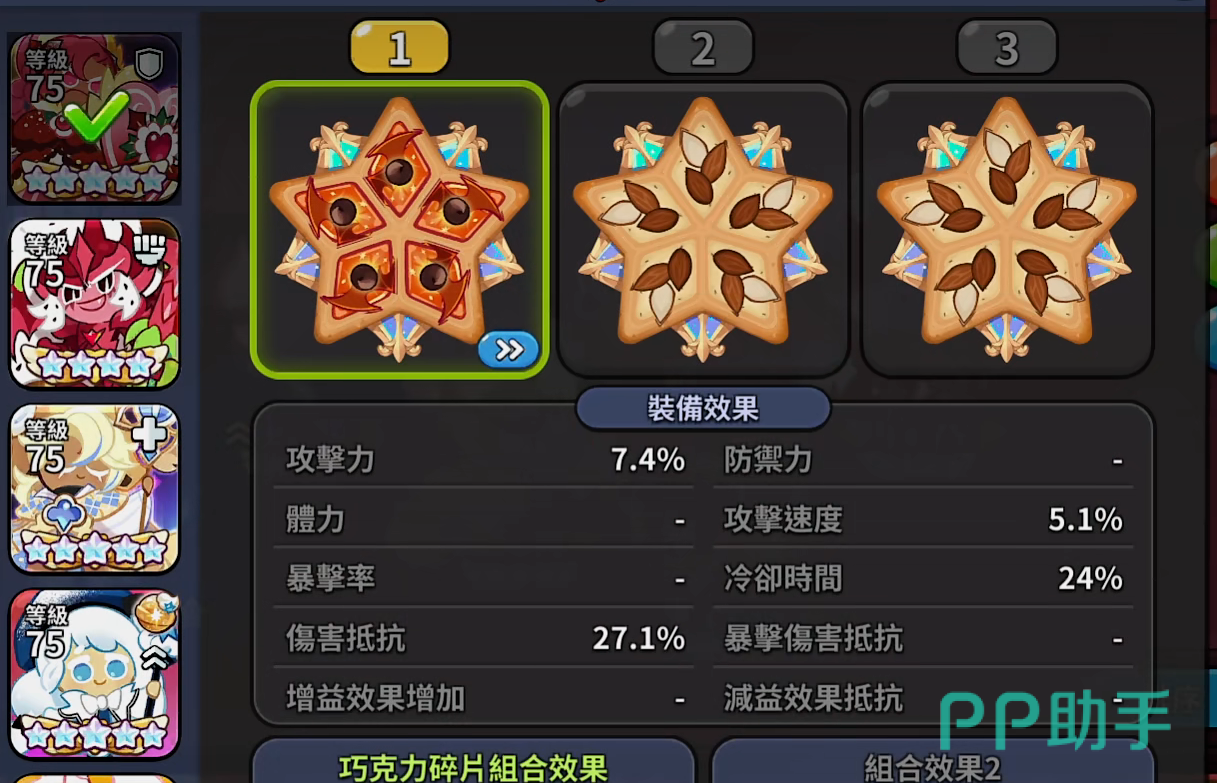 圣莓果饼干配料选择5个位置全部冷却,如果大家练度不够,体力值还是比较低的情况下,可以选择全抗的配料属性。选择全冷却的好处就是可以一直频繁触发技能盾之誓的效果。