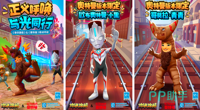 《地铁跑酷》是在地铁环境中开启的动作跑酷游戏,主题是我们非常熟悉的奥特曼角色。在奔跑的过程中会有怪兽出现,玩家需要操控角色快速的奔跑。创建美式街头的风格,让你体验全新的跑酷之旅。会有限定的人物角色可以自由选择,通过操控滑板,能够让角色登场并参与挑战。随时都有障碍出现,你要小心陷阱。切记不要错过任何的金币,将道路上的所有金币收集起来。开启一段梦幻般的跑酷之旅,还能解锁新的角色和滑板。和奥特曼进行联动,一起展开全新的动作跑酷。
