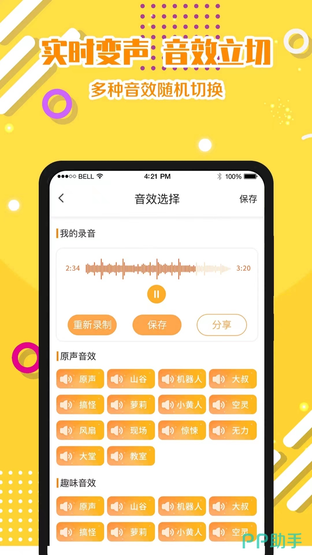 万能说明它的适用范围很广,很少有app能像它一样适配不同型号的手机和游戏的,不知道选哪个app的时候可以看看它。大家可以把经过语音包处理过的声音分享到QQ,微信等平台,说不定大家能因此收获不少关注呢。过去哑口无言的人在用了这款app后,都能或多或少地得到些许改善。