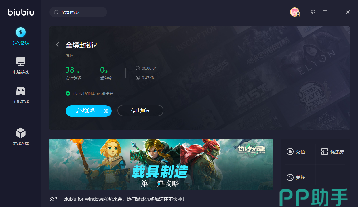 全境封锁2带来了独特刷宝射击对战玩法,地图采用开放式场景,玩家们感受刺激快节奏,体验心跳到嗓子眼的震撼氛围。它新赛季断翼膀拉开序幕,玩家们将体验新颖玩法,充当特工类角色,同伙伴们并肩战斗,发起不同战术,挑战无人机、机枪塔等新科技武器。这一端游挑战十足,玩家们都想体验,无奈不能登陆。为了解决这些尴尬,大家安装biubiu软件,从此快捷登录游戏。