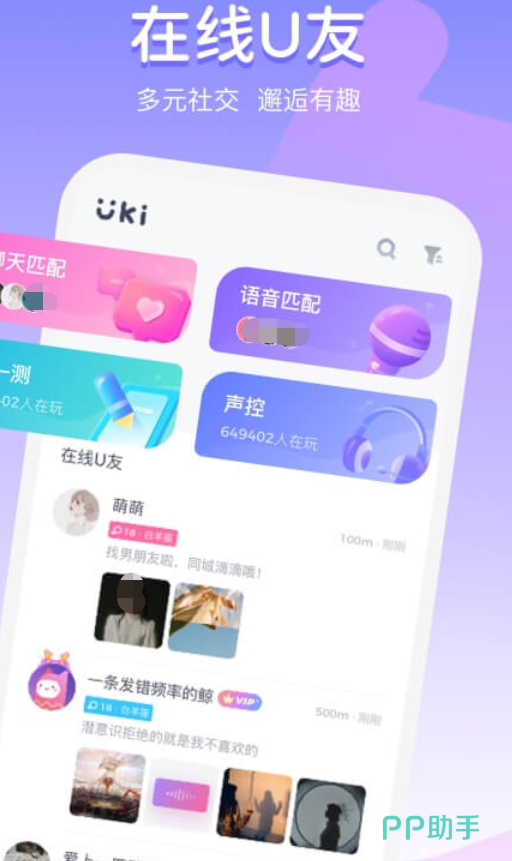 在Uki中,宅友也能交到知心的朋友,可以在线摇U友,多元社交,邂逅有趣的人,随时随地表达开心与不开心的想法,动态广场由你全权支配,遇见爱好相同的人,会得到共鸣,Uki还可以语音智能聊天,快速匹配。
