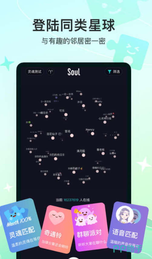 不用看脸,直接就可以交友的平台,找的就是灵魂伴侣,这里的人真实有趣,不开心就来Soul进行交友,这里可以摆脱所有工作中的不开心与疲惫,用户可以利用30秒的时间来进行灵魂鉴定,找到真正的自己。