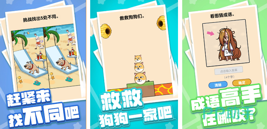 游戏主要是以闯关的方式来进行的,关卡设置有200多道,满足玩家的通关需求,且本作最大的特点便是其玩法的多样性,不同的关卡出现的内容都大不相同,玩法也非常新颖多样,找不同便是其中的一种,各种闯关的方法花样百出,很有创意,需要玩家们开动脑筋,非常值得一试。