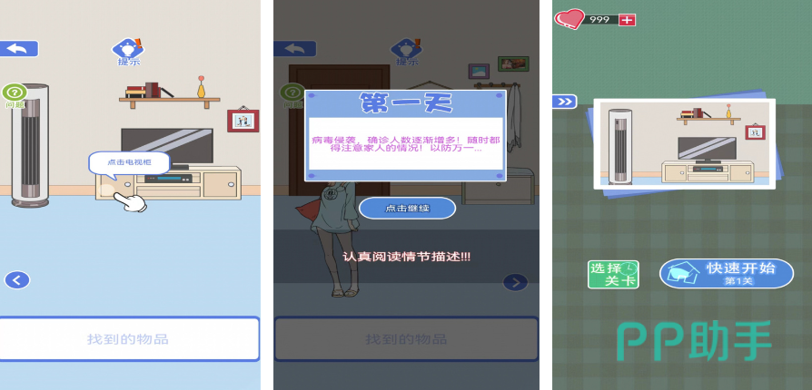 游戏中主要是让玩家帮助主角找出藏在家里的东西,以此解决问题,所以玩家既可以体验到闯关、找茬的快乐,又可以体验到跟着流程走、推进主线剧情的成就感,可玩度比较高,除此之外,画风非常日常可爱,属于Q版萌系风格,非常治愈心灵,赏心悦目,非常值得游玩。