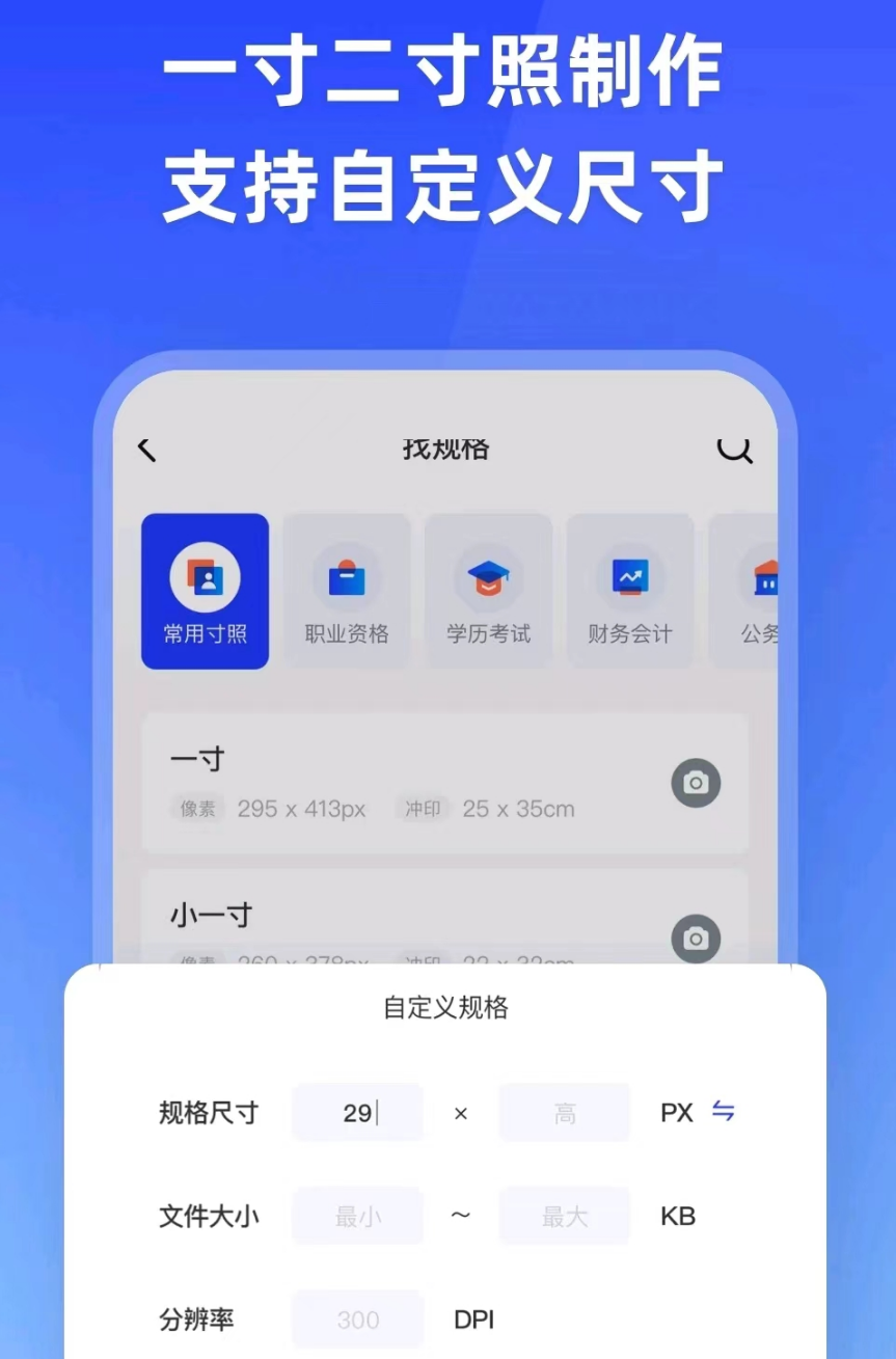 不管你的证件照是想运用在哪一个场景当中,只要是有需要证件照的地方,都可以随时拿起手机来拍一拍,一直拍到满意之后再去进行修改和保存,如果不方便拍摄的话也能拿现有的图片将面部截取直接放在预设好的模板当中。
