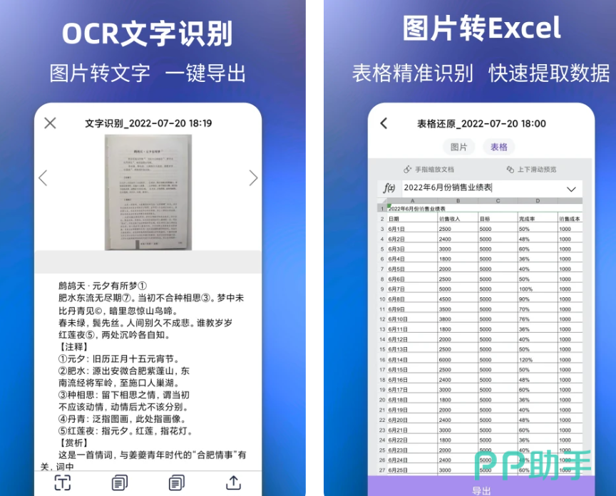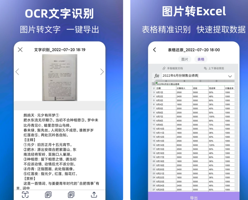 这款专业提取电子文本的软件有高精度的文字扫描,可以识别小说书籍、文章长图、Excel表格等,还支持多种语言的提取,保存原文语种还能支持同步翻译。智能解析Excel表格里面的数值数据,提升录入数据的效率,同时扫描的格式也支持表格导出,让你制表更省心。