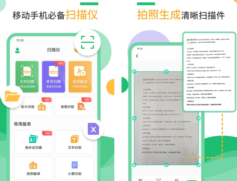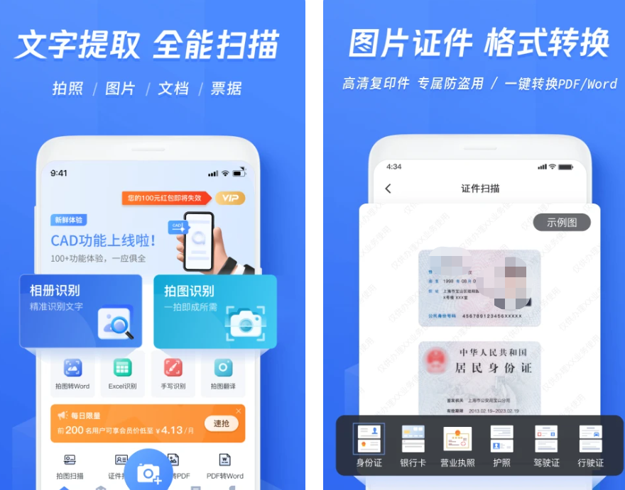 堪比手机上的便捷随身拍照扫描仪,这款软件可以扫出大部分文件的字体内容,包括收据发票、户口本、毕业照、驾驶照等,扫描内容可以选择纯文字扫描,也可以将图片提取。一键扫描结果智能去杂边,生成高清图片,用户也可以对生成结果保存至PDF或者JPG文件,分享更加方便。