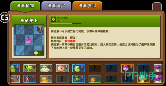 植物大战僵尸2萝卜怎么获得?瓷砖萝卜的作用跟游戏中的特殊瓷砖是一个作用,只需要在一个瓷砖上的植物用上能量豆,其余的相同瓷砖上的植物也会放技能。
