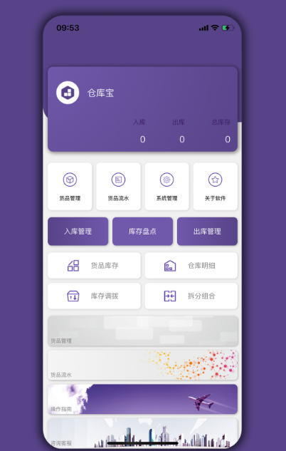 这是款简单又实用的软件,作为一款智能平台和之前仓库管理方式相比较起来,抛弃众多弊端。该软件专注于仓库管理,包括库存调拨、出库入库、货品流水、系统管理等等。画面简洁,功能实用,打开主界面,入库、出库、总数一目了然。
