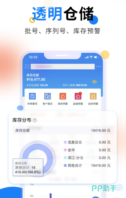 作为专业的仓库管理工具,集众多功能于一体,包括销售、出货、采购进货等,具有智能预警功能,实时监测仓库商品以及货品有效期,当货品有效期临近日期,会有预警提醒。该软件各种设备都可使用,比如手机、平板、PC端等,满足各大仓库管理需求。