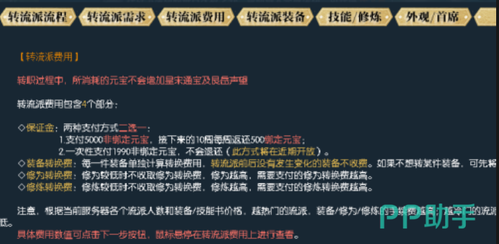5、目前转职操作有两种方式。第一种是支付五千数额的元宝,先行消耗,之后会做全部返还。第二种是给出两千的元宝,直接完成转职。而角色对应的修为和修炼,如果想要跟着职业转换的话,那就还需要相应的元宝数量。总评分越多,其对应的元宝数就越高。