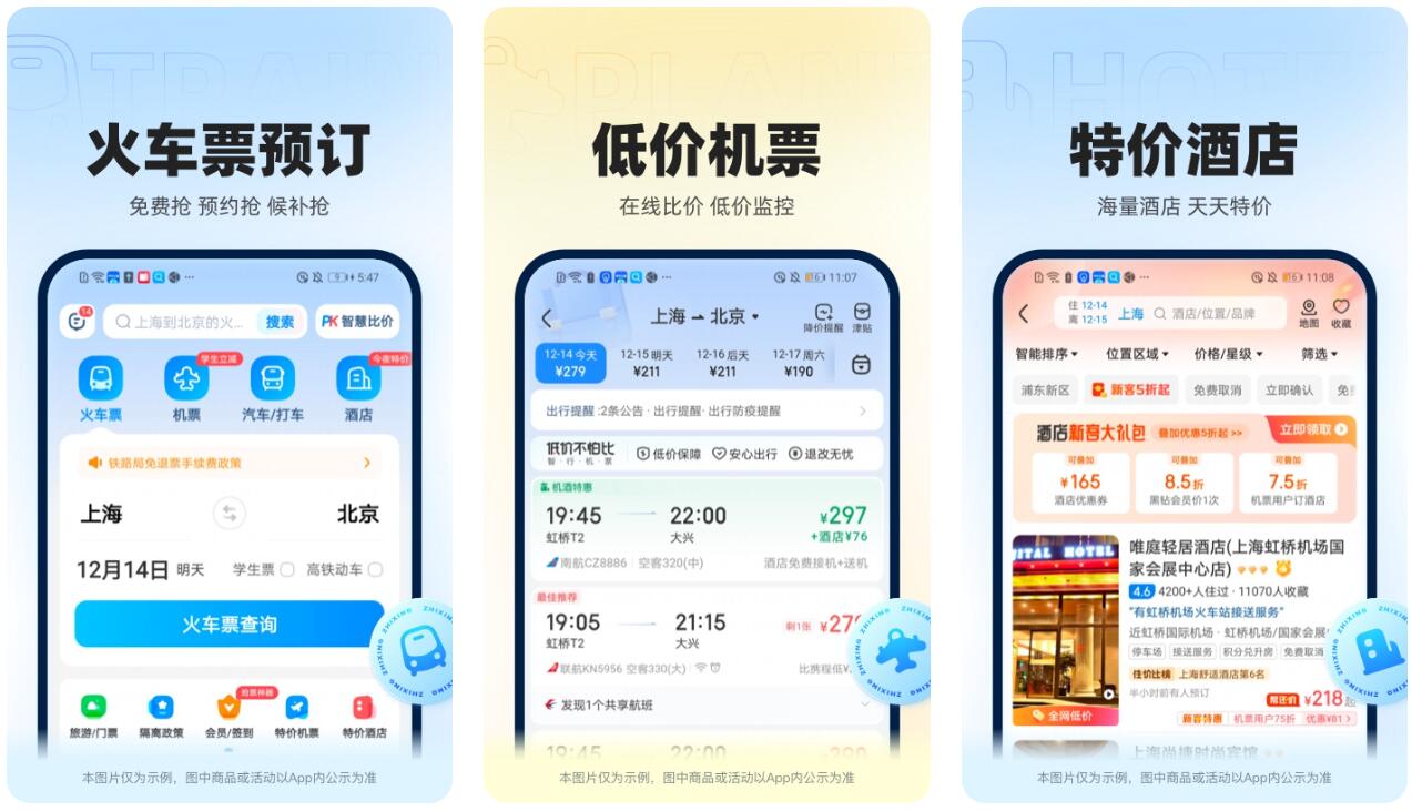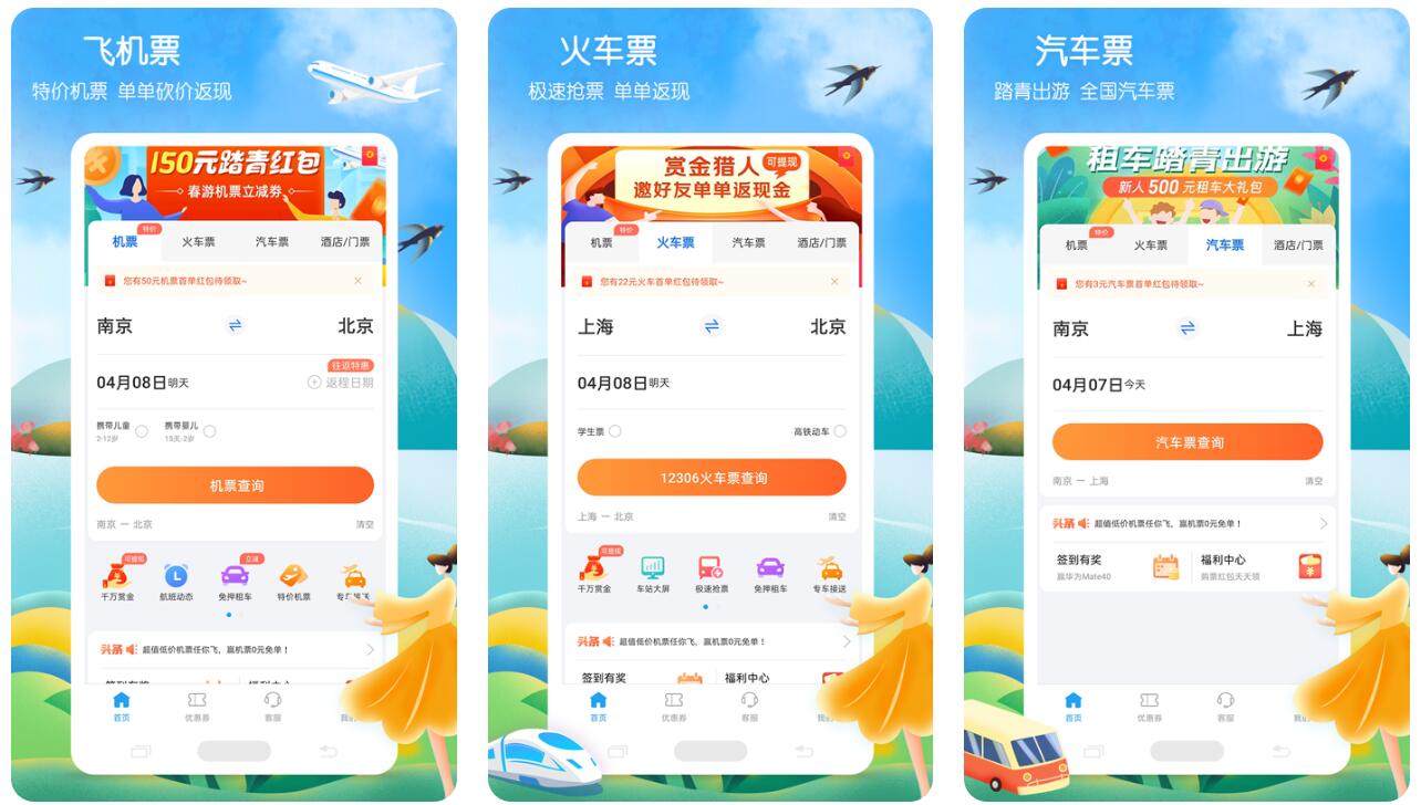 虽然是一款专注于各种旅行的app,但软件当中依然为大家提供了最基础的车票预定功能,各位进入到专区之后即可选择合适的时间并进行订票,除此之外,喜欢乘坐飞机等交通工具的用户,还可以在软件当中享受到各种打折优惠,进一步节省预算的同时,还可以让大家享受到不错的出行服务。而app的界面设计也很简介,各项功能可以轻松找到。