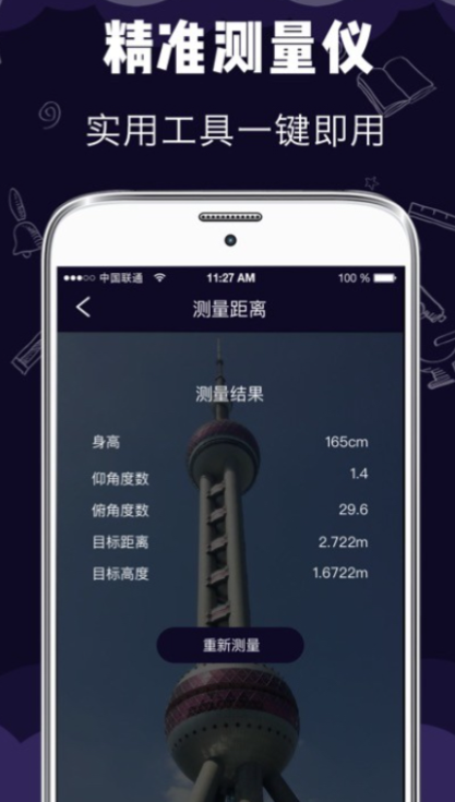 在这个软件中你不只是能完成基础的测量面积功能,还能在软件中输入你的身高并进行保存之后,快捷地测量出建筑、树木等的高度,对多种计量单位进行单位转换。当你在户外时,该软件还能充当指南针,让你不会失去方向。