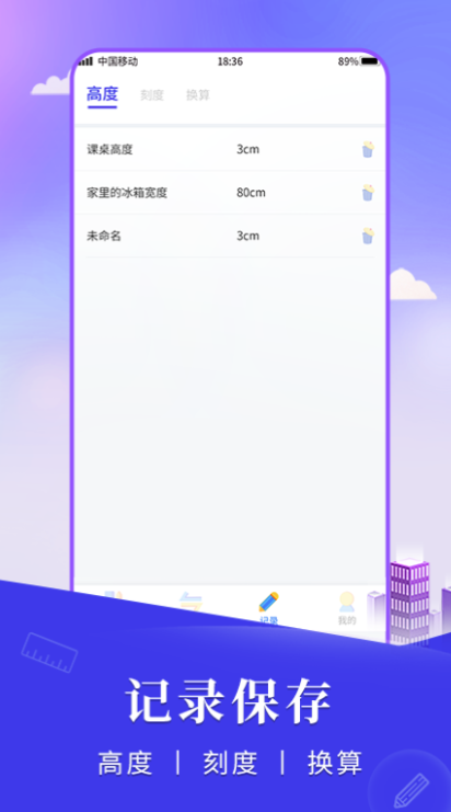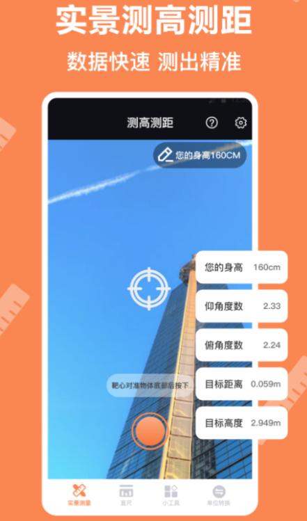 拥有这款软件就相当于口袋中放了一整套的日常工具,在对物品的面积或者长宽高完成测量后可以创建记录。当物品不在身边但需要知道物品的物理信息时就可以在软件的测量记录中查看到。将准星对准某人的脚底与头顶迅速就能得到某人的身高。