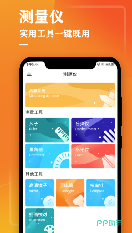 日常生活的得力助手,有了这款软件就能省去很多生活工具,一个代替多个。除了能进行简单的面基测量之外,还可以对你的身高、你所处环境的海拔、弯曲处的角度等进行测量。当你身处嘈杂的环境时打开这款软件能为你识别当前分贝是否影响你的听力。