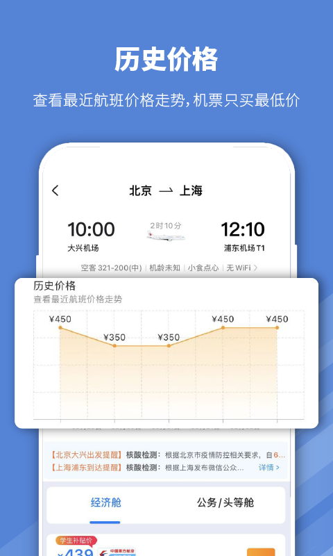 想要购买优惠特价机票,这里可以。找到各种学生折扣机票,整合了全网的资源,为大家提供一些优质的学生票,还可以查看最近的航班价格走势。让用户拿到心动的折扣,机票价。