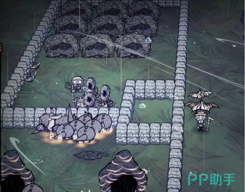 游戏的剧情主题就是让玩家们处于一个饥荒状态下进行生存的游戏,在游戏中很多地方都是没有人烟的,而且土地非常的贫瘠,农作物枯萎最基本的生存条件都不能保证,而玩家们要在有限的生存土地上寻找资源,来养活自己。