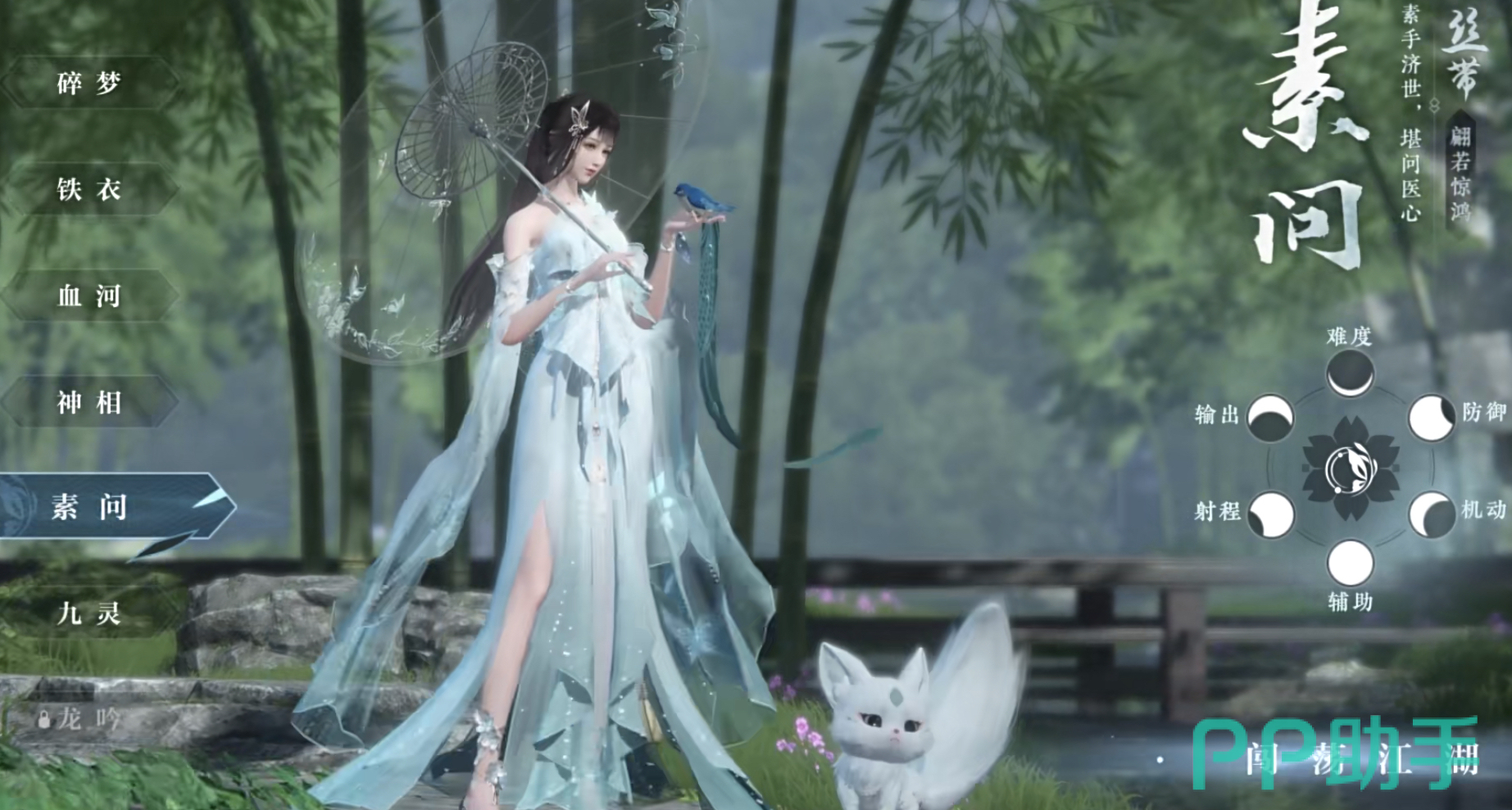 素问在游戏中的定位是辅助类型的,属于奶妈角色,可能在前期来说单人挑战任务中素问的出场率不高,但是在后期团队作战中奶妈的作用还是很重要的!素问的操作上不算难度特别大的门派,主要的职责就是帮助队友在血条危险的时候奶他们一口,帮助他们恢复状态,保证血条健康,所以咱们只需要时刻注意好队友的血量,及时回血就算是做好本职工作了。