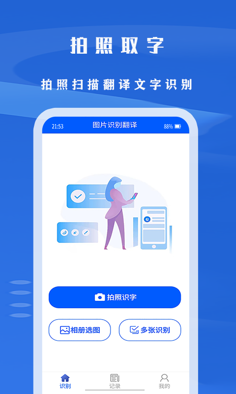 这款软件可以拍照识别,还可以图片识别、文档识别、票据识别等等,支持各种格式之间进行转换,还可以一键分享或离线下载,可以直接分享给亲朋好友,还可以下载之后在没有网络的地方查看,还支持语言翻译等等。