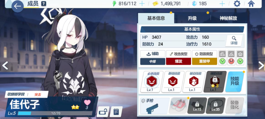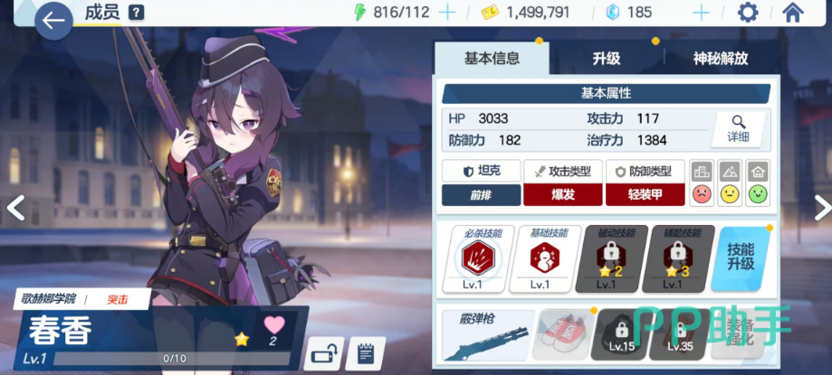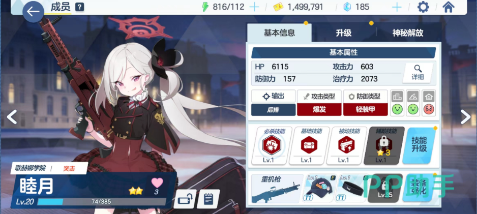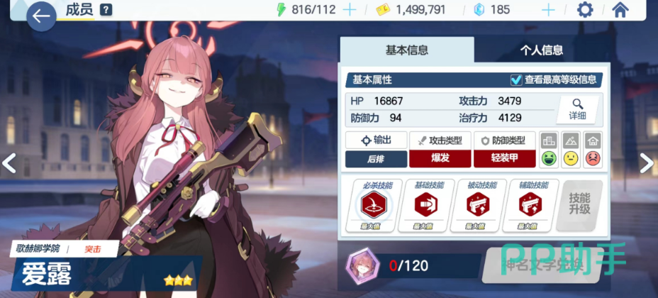 角色在游戏中的表现则是相当不错,虽然基础为攻击手的爆炸属性带轻装甲,拿的还是一把狙击枪。但是实际体验会发现,这个角色的群攻伤害和清图能力非常优秀。是新手前期非常推荐作为主力培养的角色,伤害很高。那杆大狙单体攻击可打BOSS精英怪,群体下挂榴弹还能打范围伤害,相当不错的角色。而且角色获取方面,后期主线也可以在主线18-3刷碎片。因此,在玩家群体中人气非常高,可以称之为便利屋四天王之首。